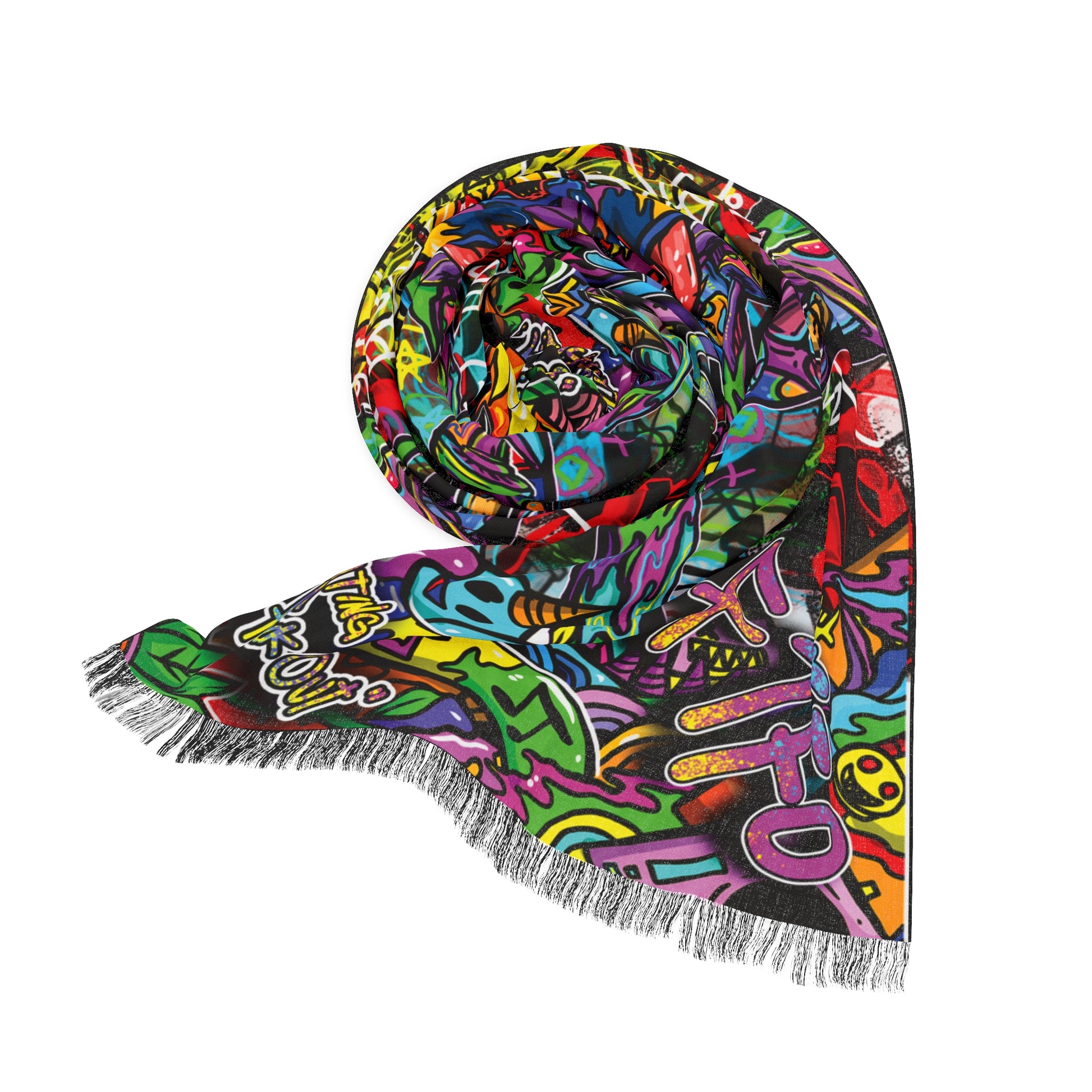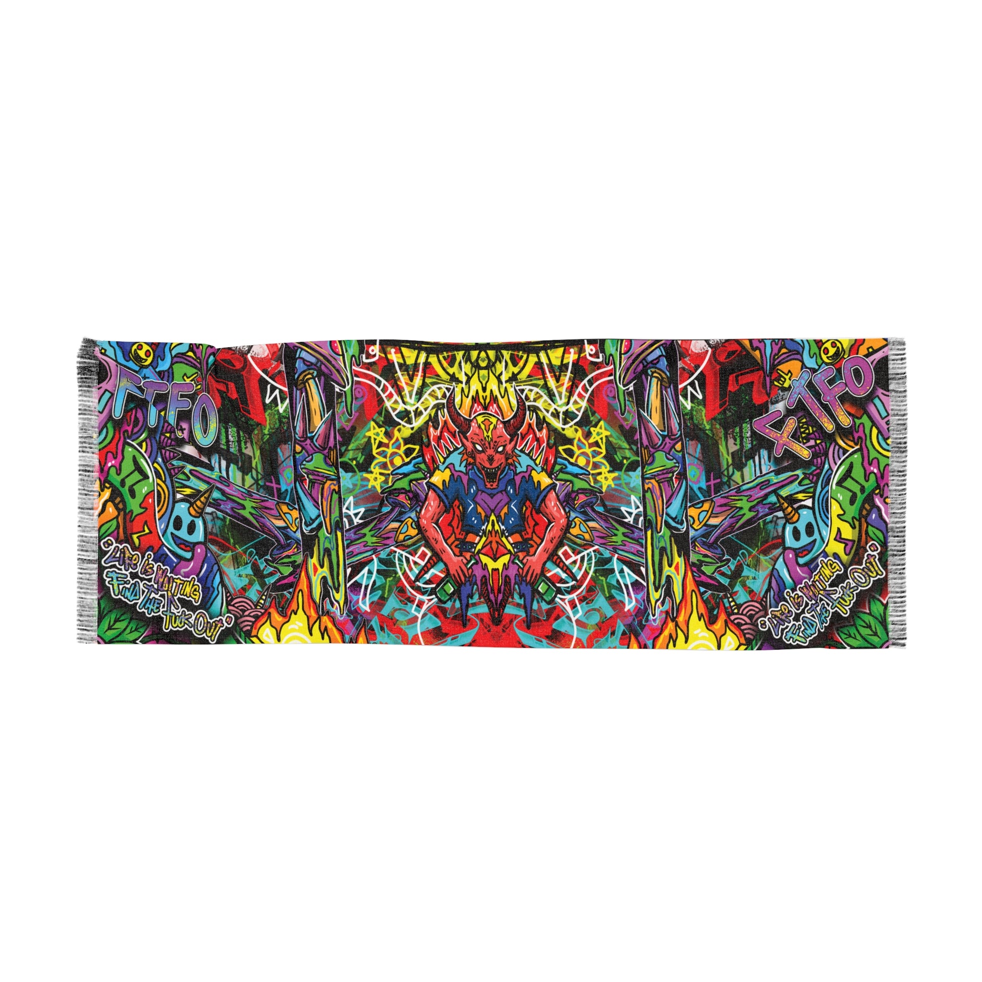 Stay warm and stylish with our FTFO Pashmina, Party Demon Edition. This lightweight pash is perfect for accessorizing any rave or event. Ideal for those who love unique accessories and want to stand out at parties or events.